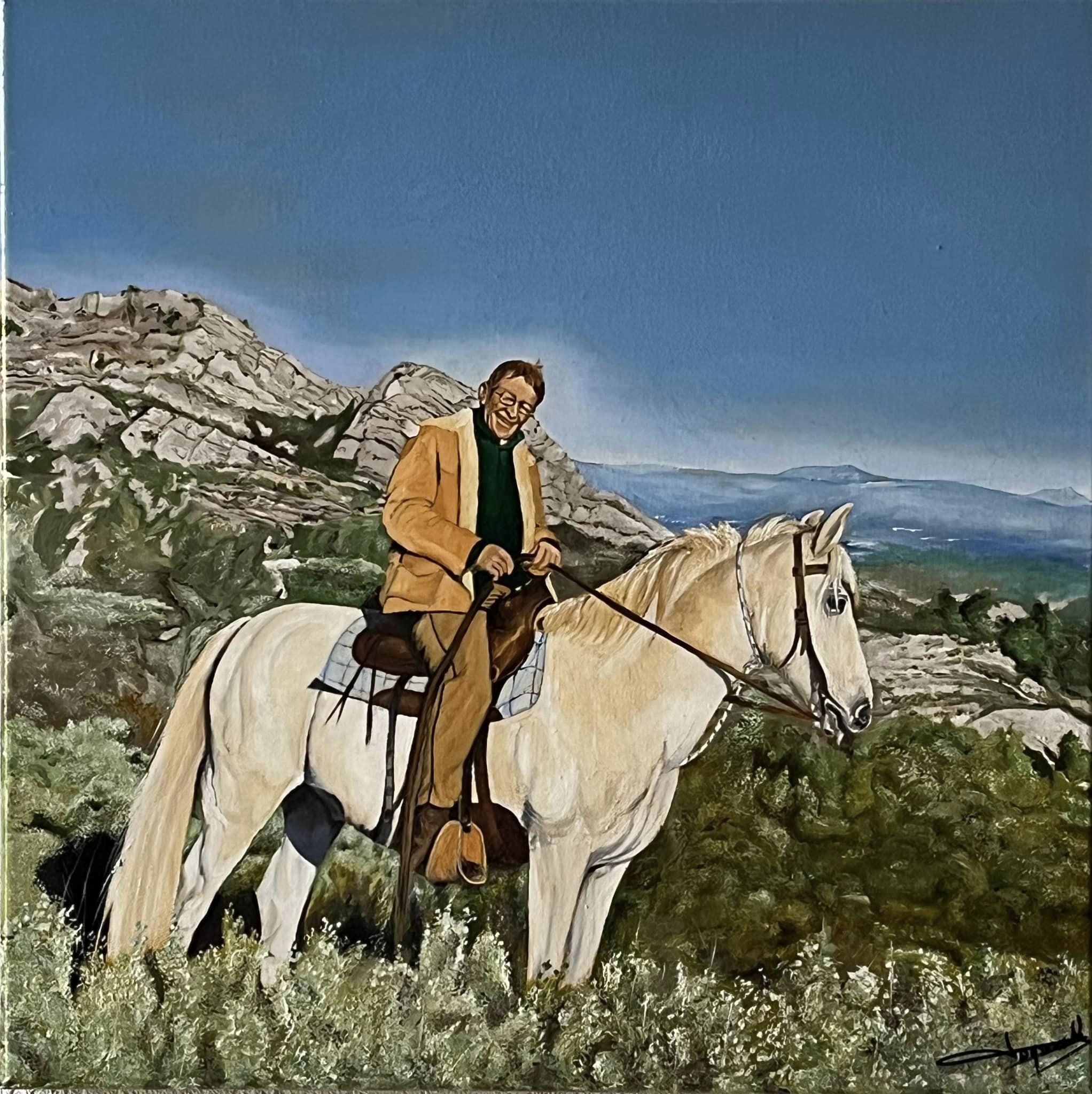 A guardian walks with "Blanc du Jale" / huile - 50 x 50