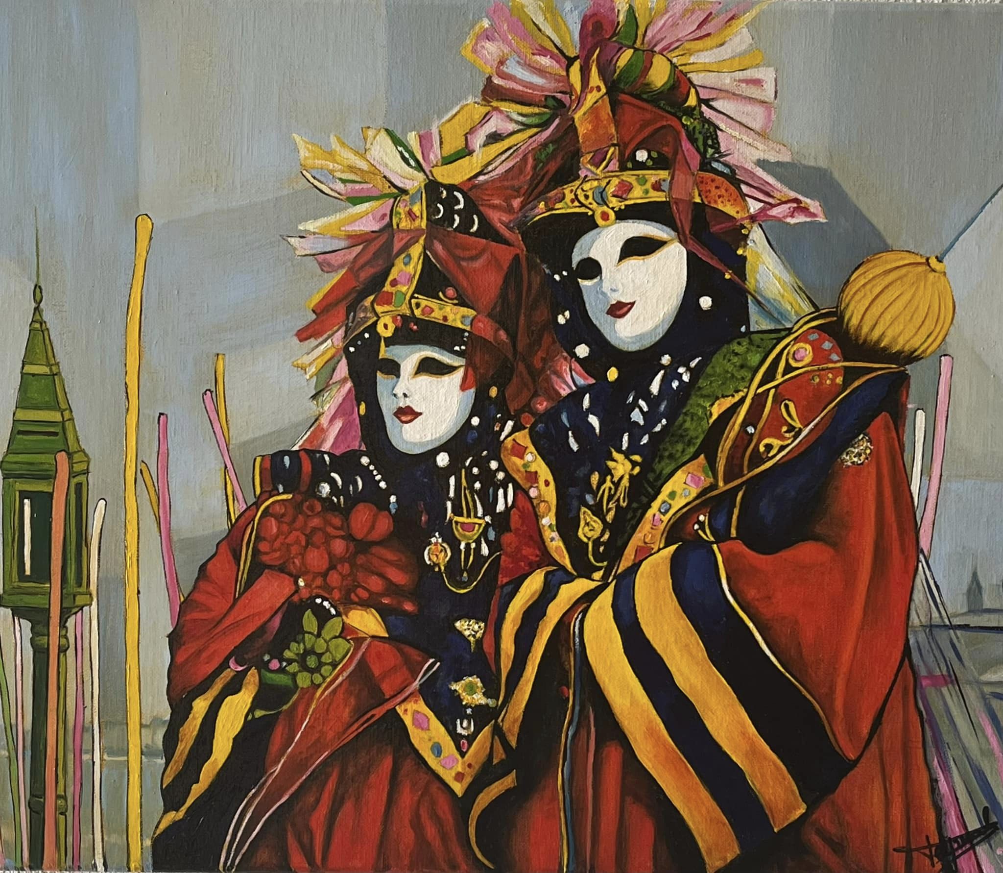 "Les masques rouges" d'ap. Léon Zanella 8F - 46 x 38