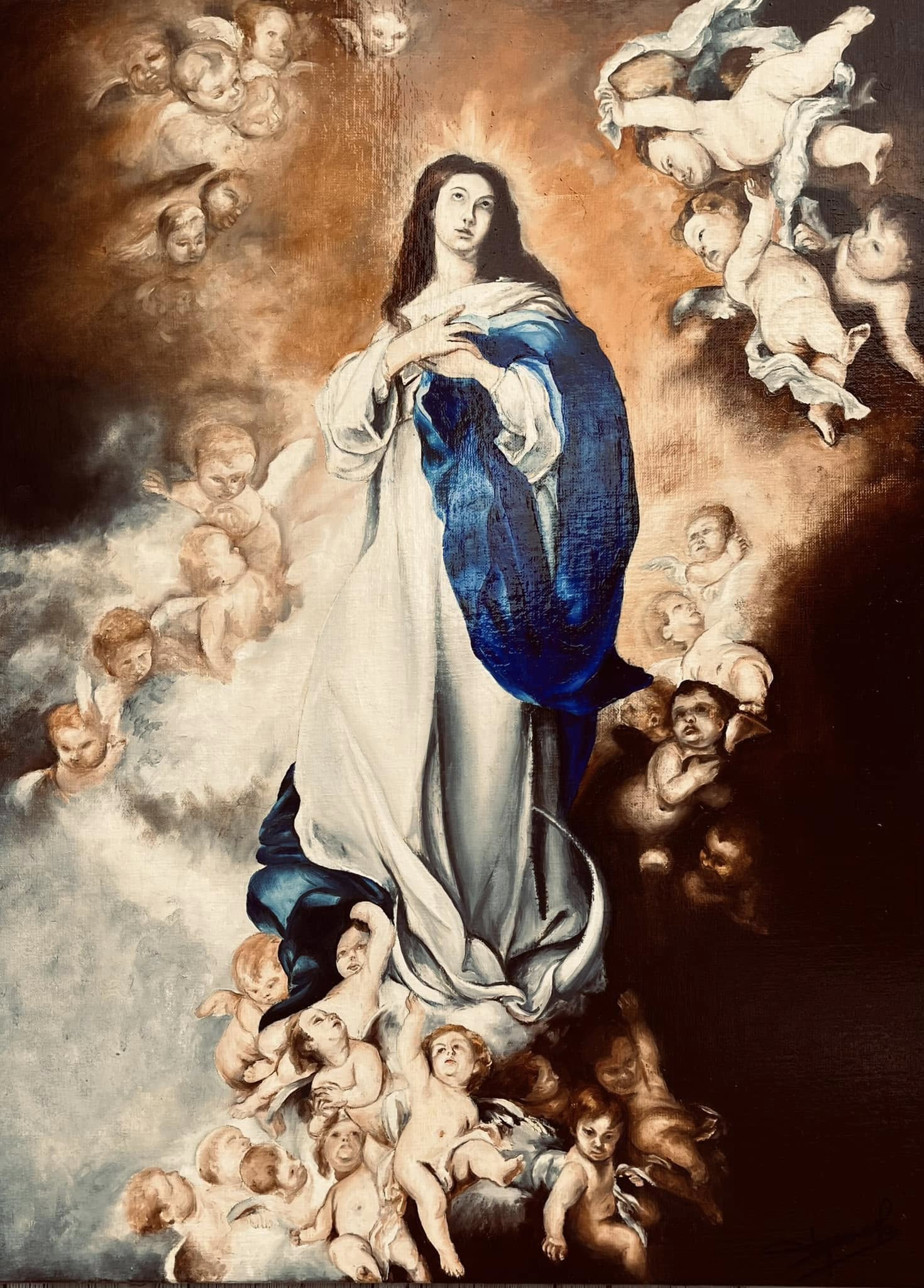 "Immaculée Conception" d'ap. Murillo huile sur toile de lin - 20 P (73 x 54)