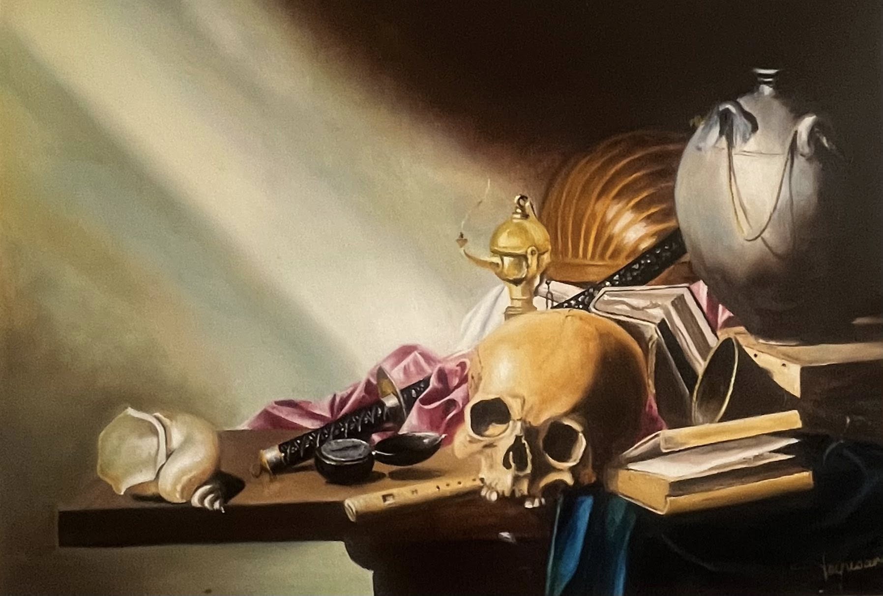 Vanités II - d'ap. H.Steenwyck huile sur lin - 10 P (55 x 33)