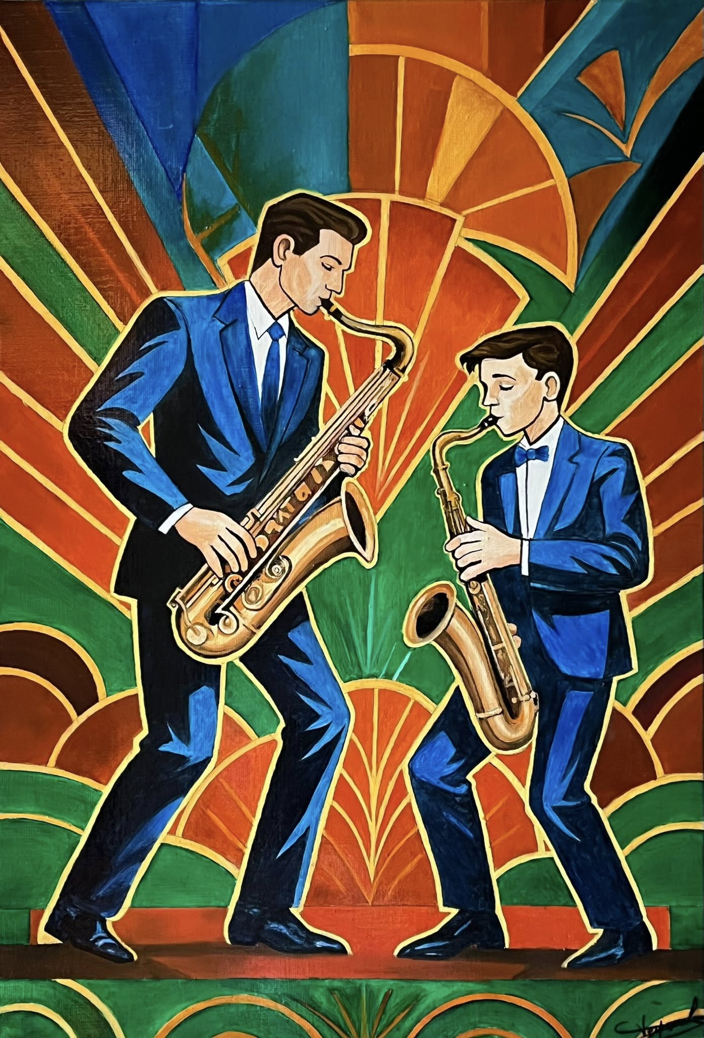 Take Five - Co-création/IA Huile sur lin 20 M (73 x 50 cm)